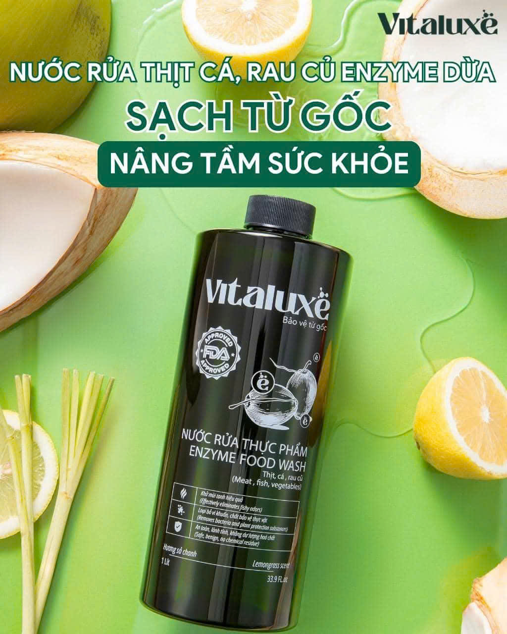 Đánh giá ☘☘ NƯỚC RỬA THỊT CÁ , RAU CỦ ENZYME DỪA VITALUXE 1 LÍT
