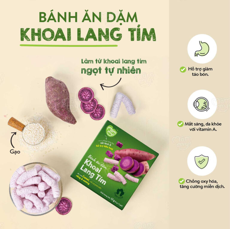 Bánh ăn dặm Mammy vị Khoai Lang Tím – món ăn nhẹ tự nhiên, thơm ngon và lành tính cho bé yêu từ 6 tháng tuổi trở lên 💜