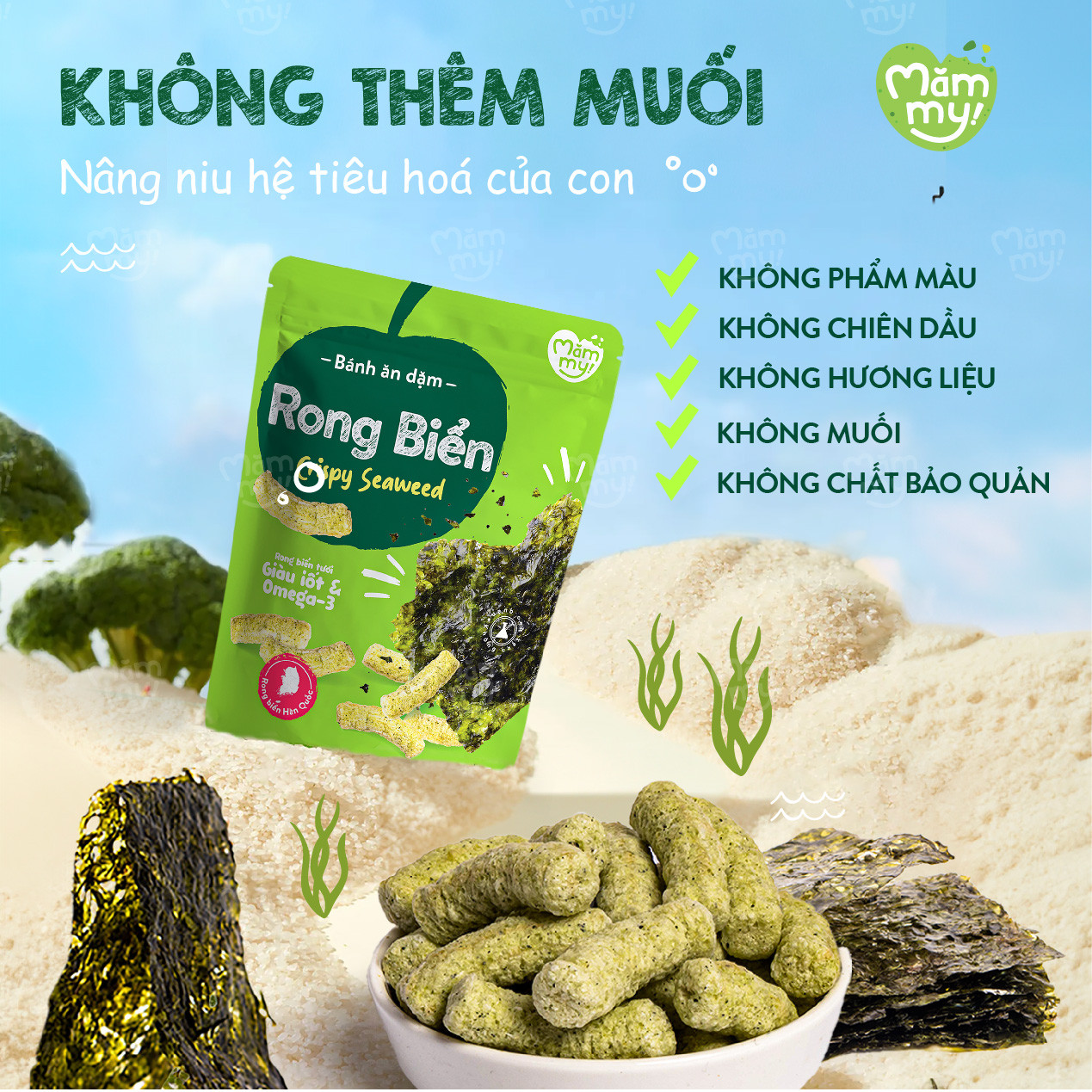 Bánh Ăn Dặm Rong Biển Mămmy – Giòn Tan Tự Nhiên, Dinh Dưỡng Trọn Vẹn, An Toàn Cho Bé Yêu 💚