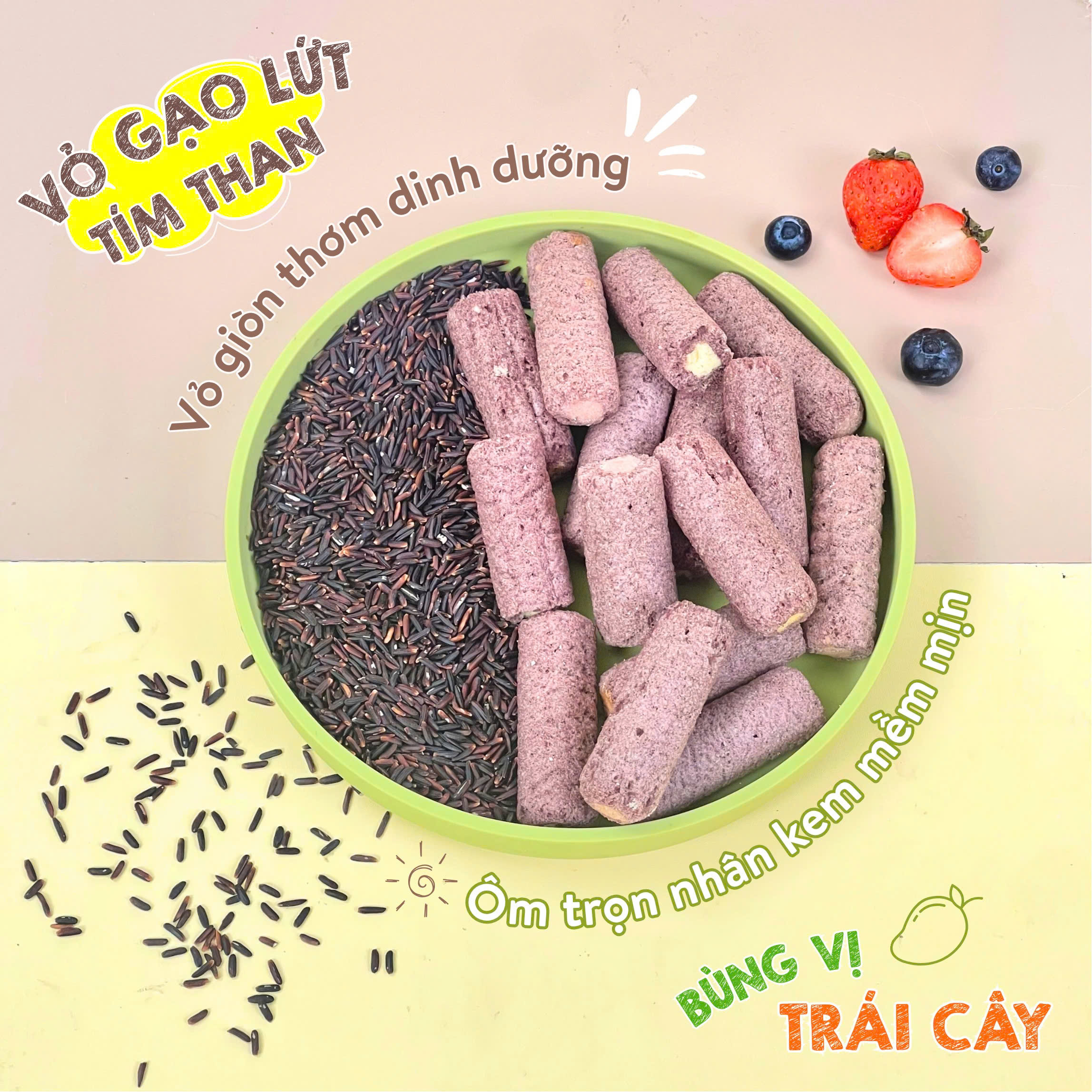 Nguyên liệu tự nhiên: Làm từ bột mì, bột cacao, trái cây xay nhuyễn và phô mai thật – không phẩm màu, không chất bảo quản.
