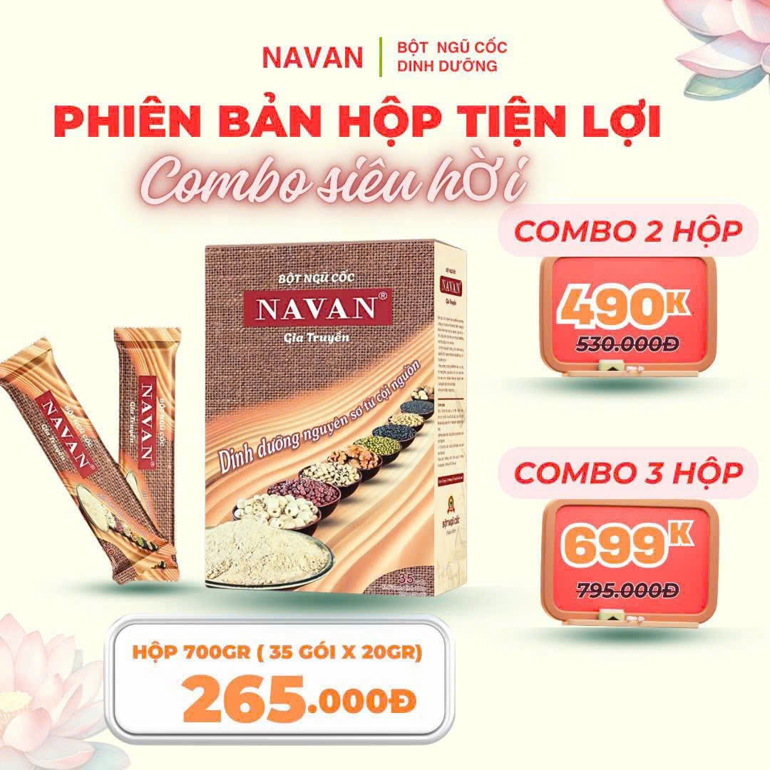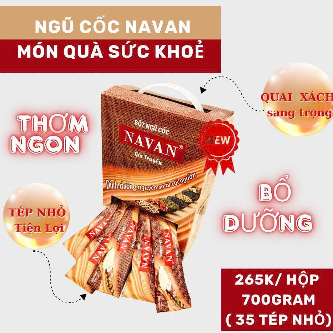 Bột ngũ cốc NAVAN Gia Truyền 700g (35 gói x 20g) – 100% ngũ cốc nguyên chất, thơm ngon, tiện lợi. Bổ sung năng lượng & dưỡng chất tự nhiên cho cả gia đình. Phù hợp cho mọi lứa tuổi!