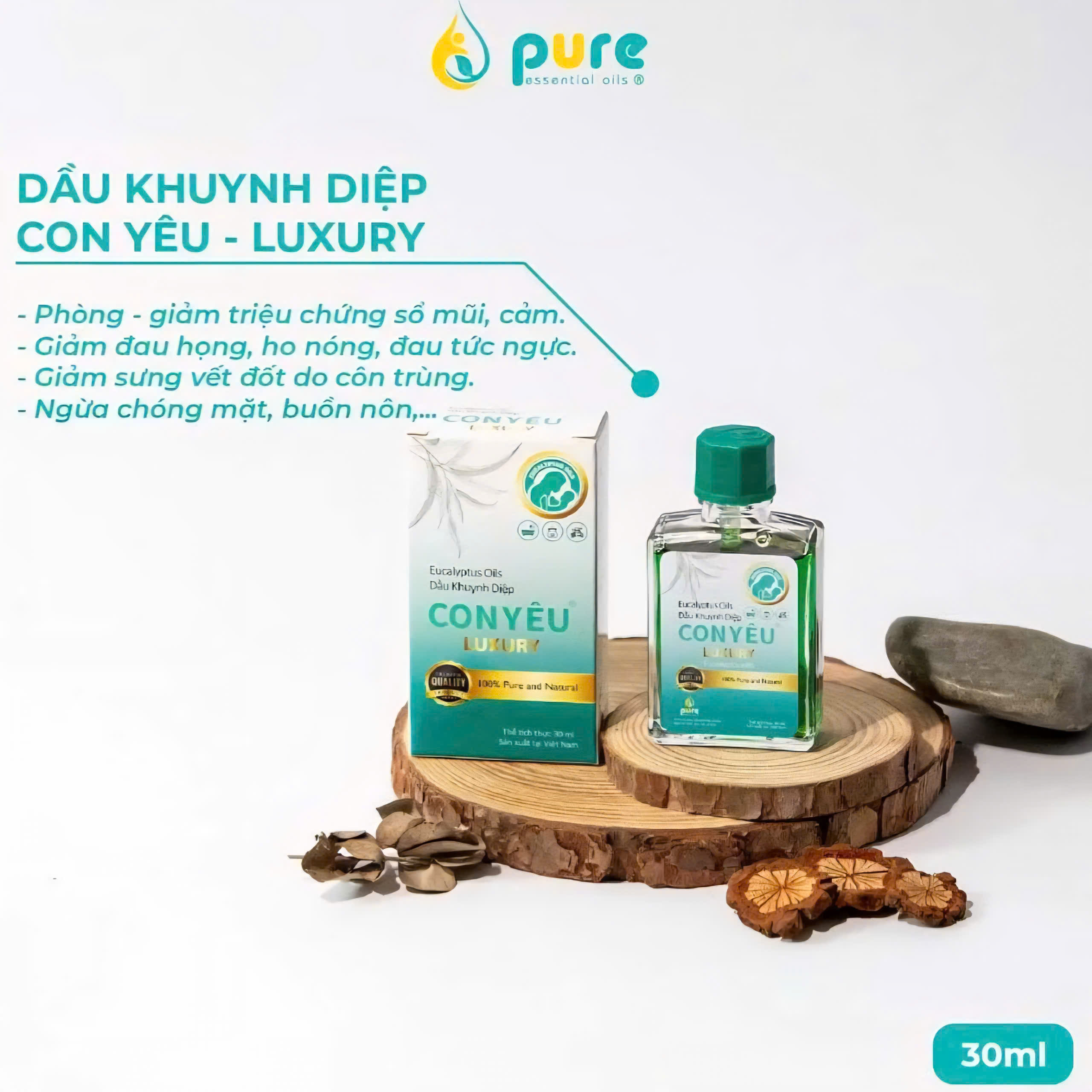 Dầu Khuynh Diệp Con Yêu Luxury Pure – Giảm Cảm, Thư Giãn, Hỗ Trợ Giảm Nghẹt Mũi, Xua Côn Trùng Tự Nhiên 30ml