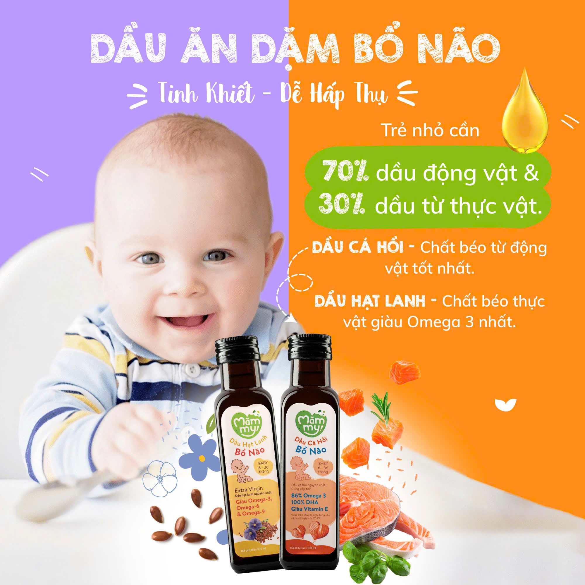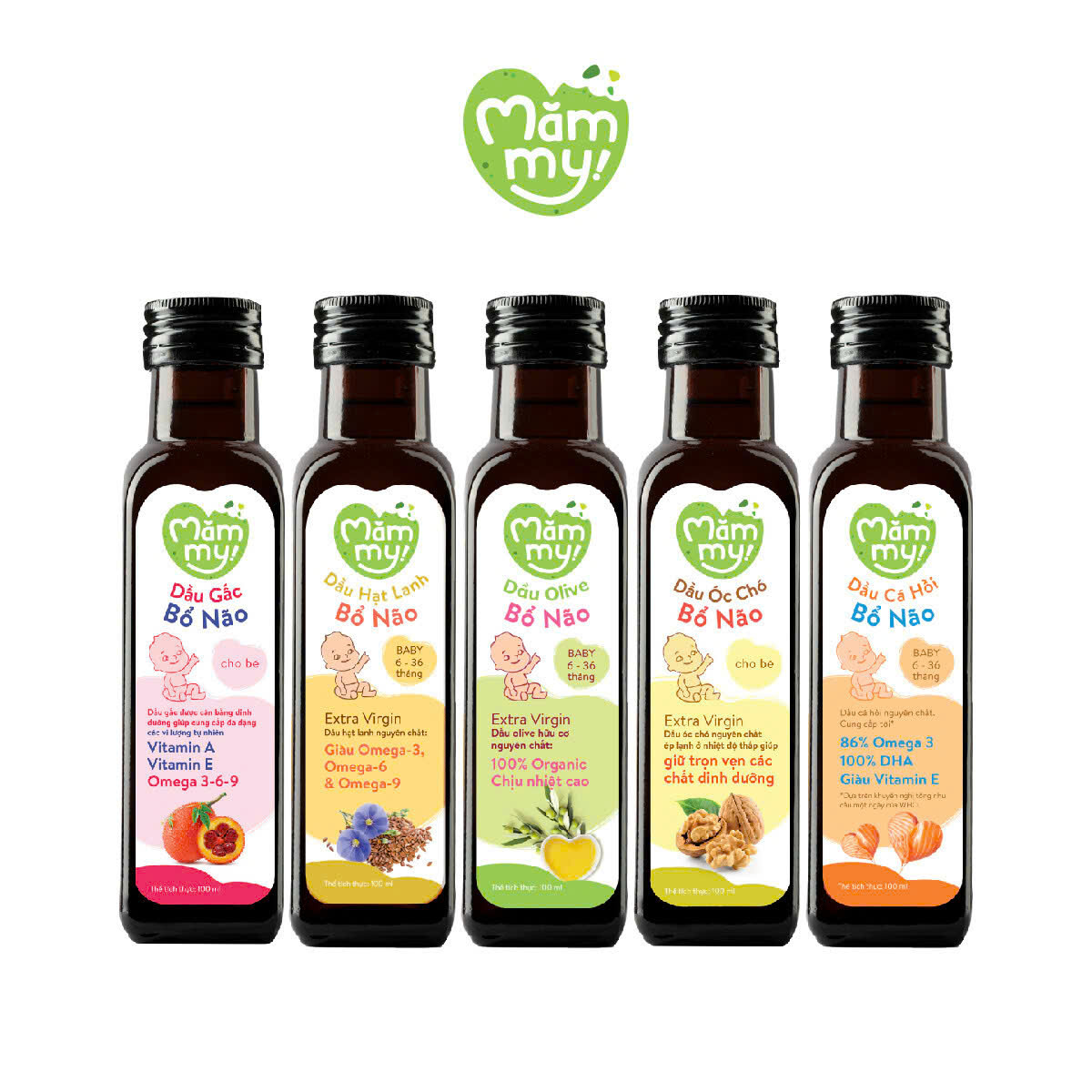 Dầu Olive Bổ Não Mammy Cho Bé 100% Organic Ép Lạnh Extra Virgin Giàu Omega 3-6-9 Hỗ Trợ Phát Triển Toàn Diện
