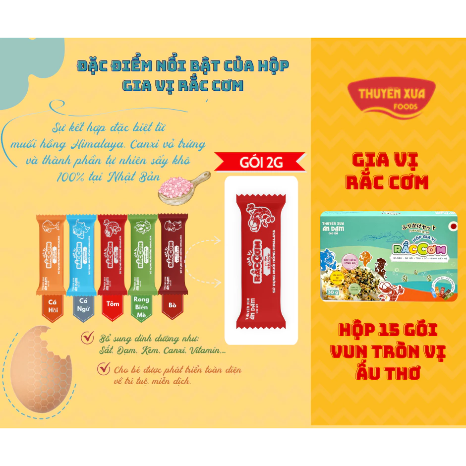 ✨ Gia vị rắc cơm Thuyền Xưa được sản xuất tại Nhật Bản, tiện lợi cho bữa ăn của bé và cả gia đình. Sản phẩm có nhiều hương vị hấp dẫn từ nguyên liệu tự nhiên, giúp bữa ăn trở nên ngon miệng và đa dạng hơn.