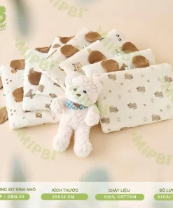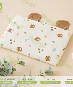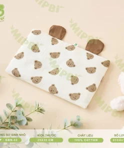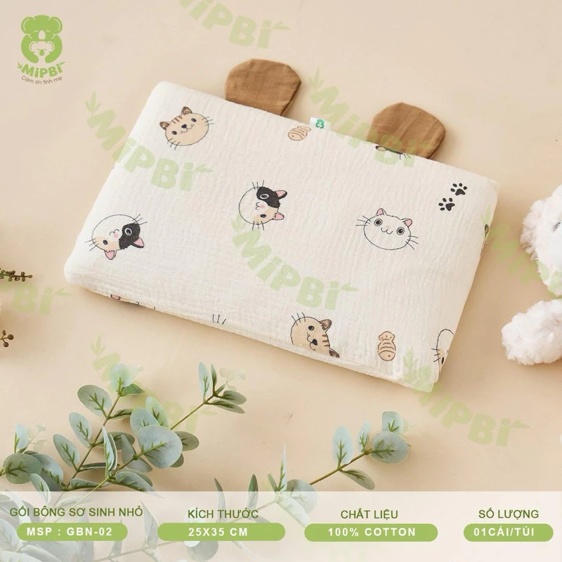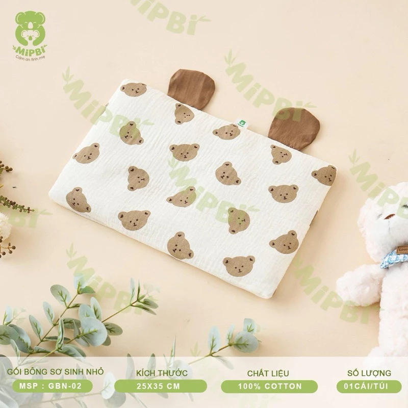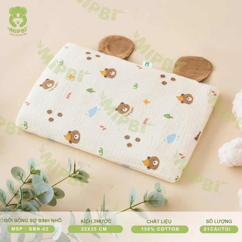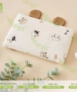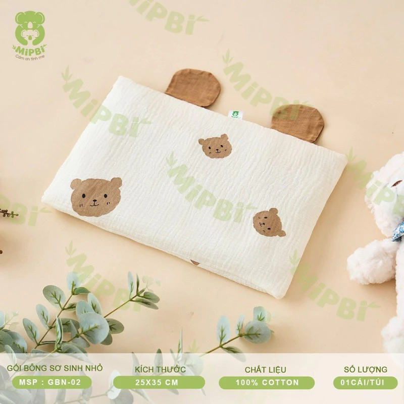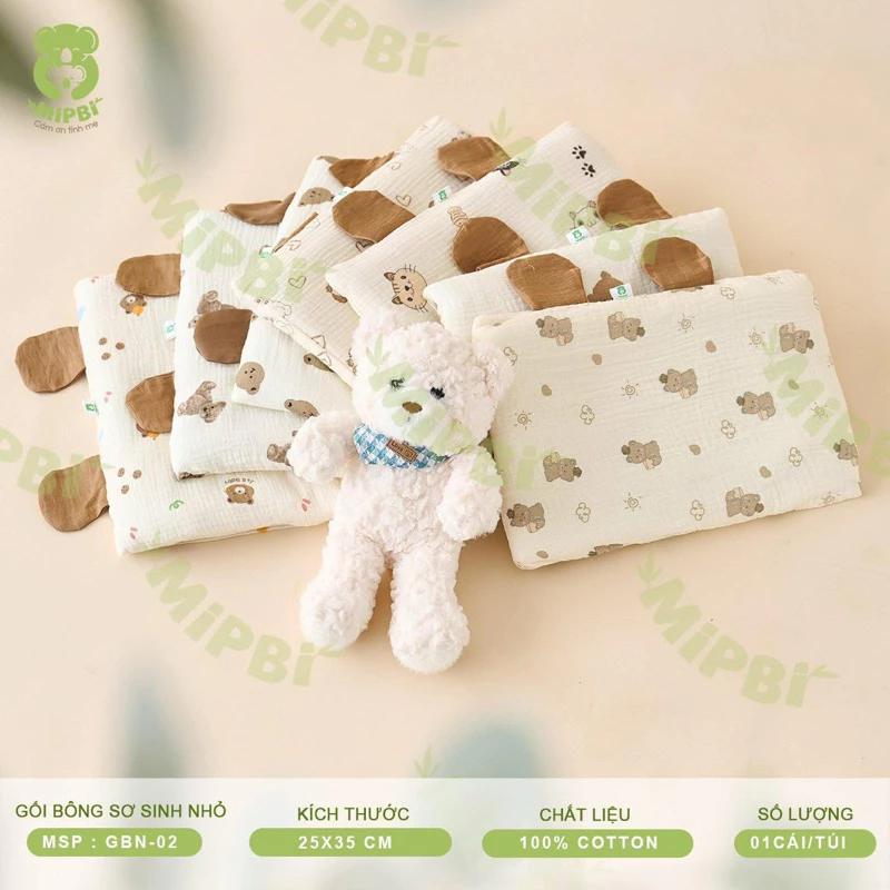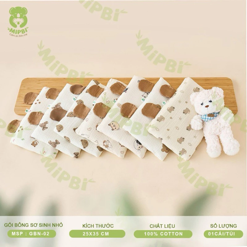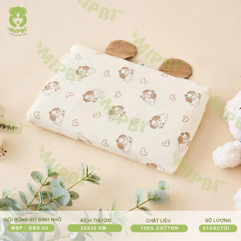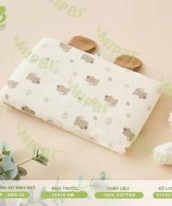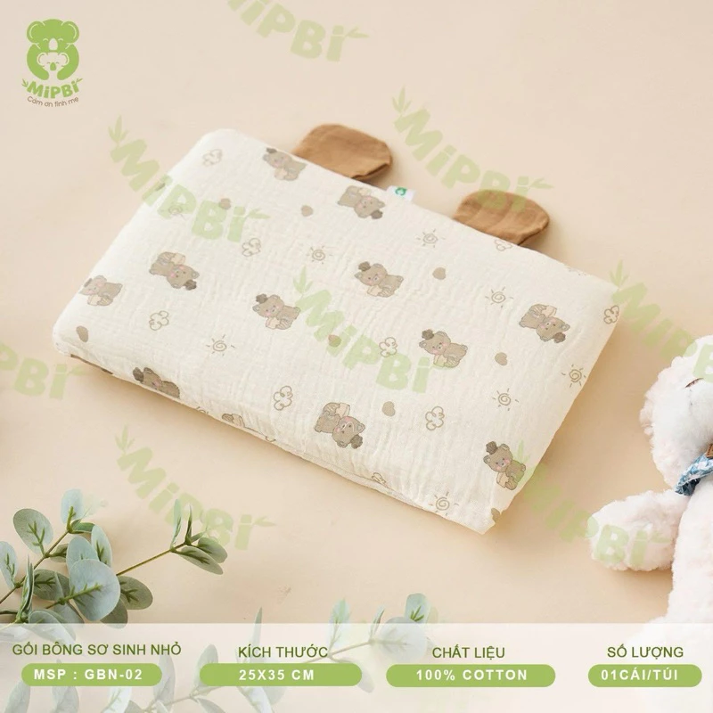 Gối Bông Sơ Sinh Nhỏ MIPBI 25x35cm – 100% Cotton Mềm Mại, Thoáng Khí, Êm Ái, An Toàn Cho Trẻ Sơ Sinh