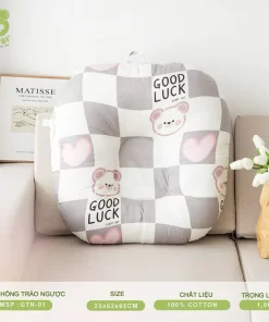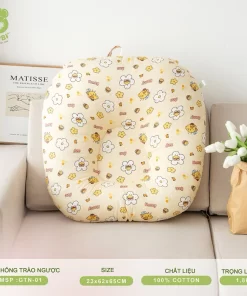 • Ruột gối bông đàn hồi cao, không xẹp lún, giữ dáng lâu dài, hỗ trợ cột sống bé phát triển tự nhiên.