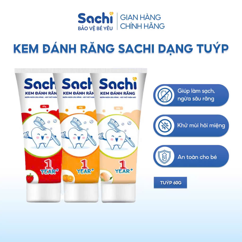 Đánh giá Kem Đánh Răng Trẻ Em Sachi 1+ Chiết Xuất Thiên Nhiên – An Toàn Cho Bé, Hương Dâu / Cam / Đào – Tuýp 60g