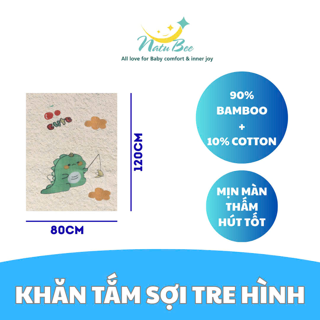 Đánh giá Khăn tắm sợi tre hình NatuBee 80x120cm – Mềm mịn, kháng khuẩn tự nhiên, thấm hút tốt, an toàn cho bé yêu