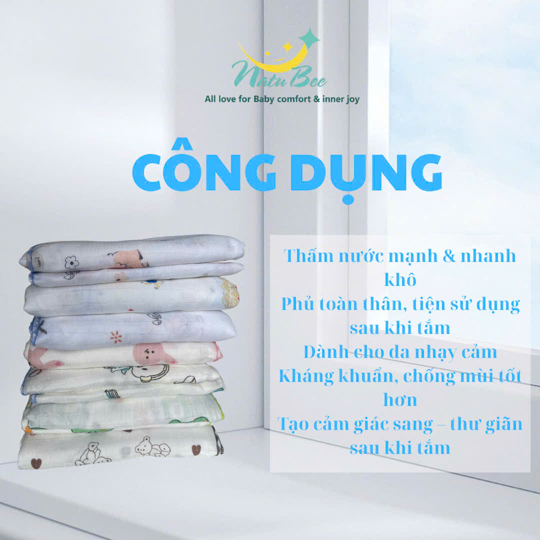 Dùng để lau khô sau khi tắm, lau mặt, hoặc làm chăn mỏng cho bé.