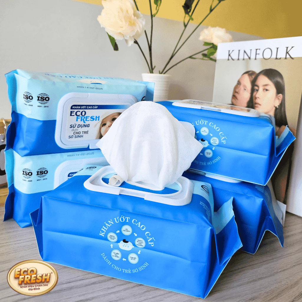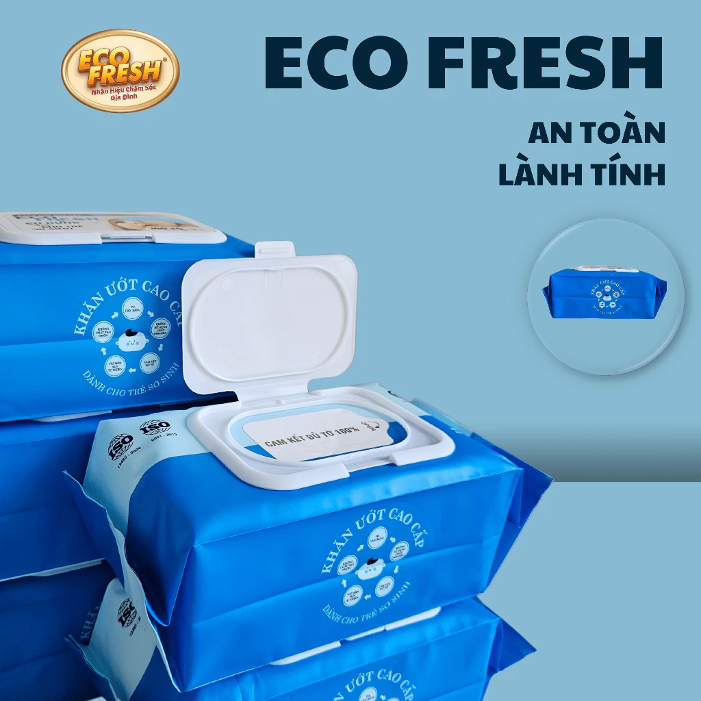 Khăn ướt ECO FRESH màu xanh là dòng khăn ướt cao cấp được nhiều mẹ tin dùng cho trẻ sơ sinh và trẻ nhỏ dưới 36 tháng tuổi.