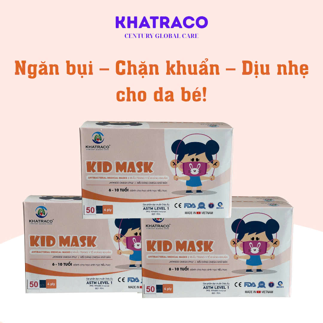 Đánh giá Khẩu Trang Y Tế Trẻ Em KHATRACO KID MASK – 4 Lớp Kháng Khuẩn, Mềm Mại, Dễ Thở, Dành Cho Bé 6–10 Tuổi (Hộp Hồng 50 Cái)