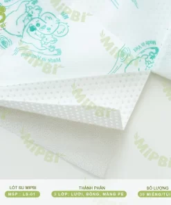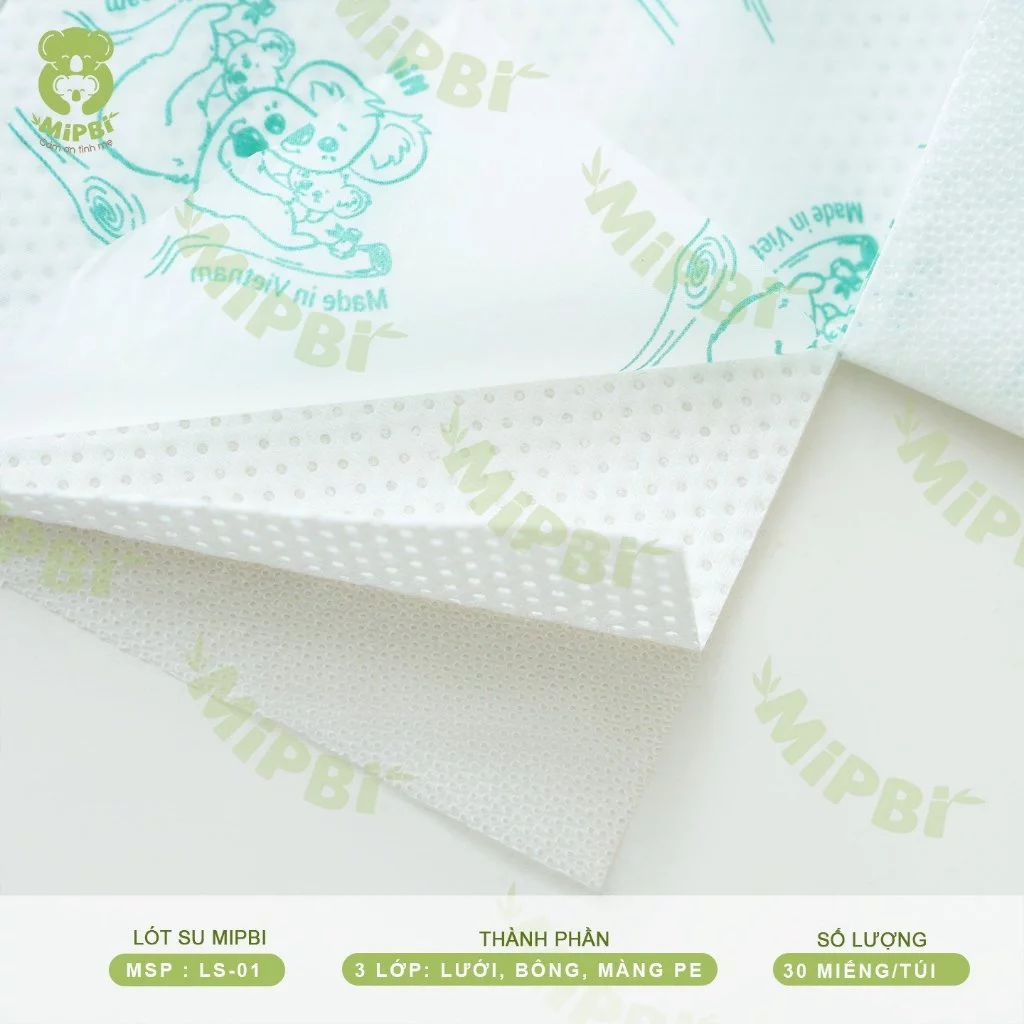 • Lót su Mipbi là sản phẩm thiết yếu giúp mẹ giữ cho bé luôn khô thoáng, sạch sẽ trong suốt quá trình chăm sóc.