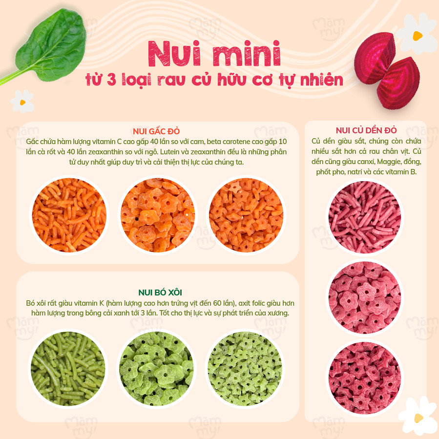 Nui Tập Nhai Mămmy Cho Bé Ăn Dặm – Bò Xôi, Gấc Đỏ, Củ Dền | Giàu Canxi Sắt Vitamin C | Không Chất Bảo Quản