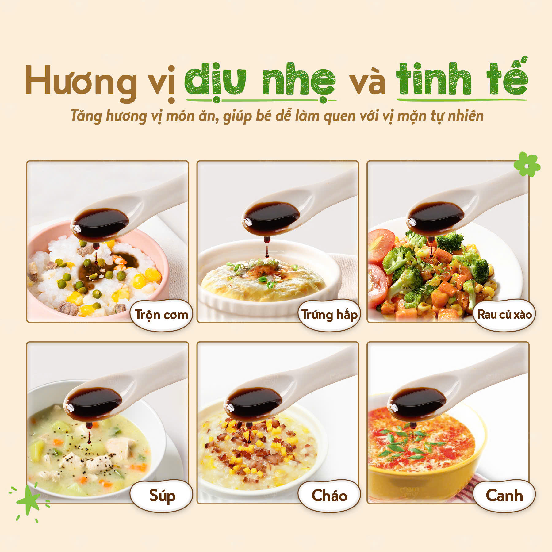 • Dễ dàng kết hợp trong các món cháo, súp, rau củ luộc hay bún mì cho bé.