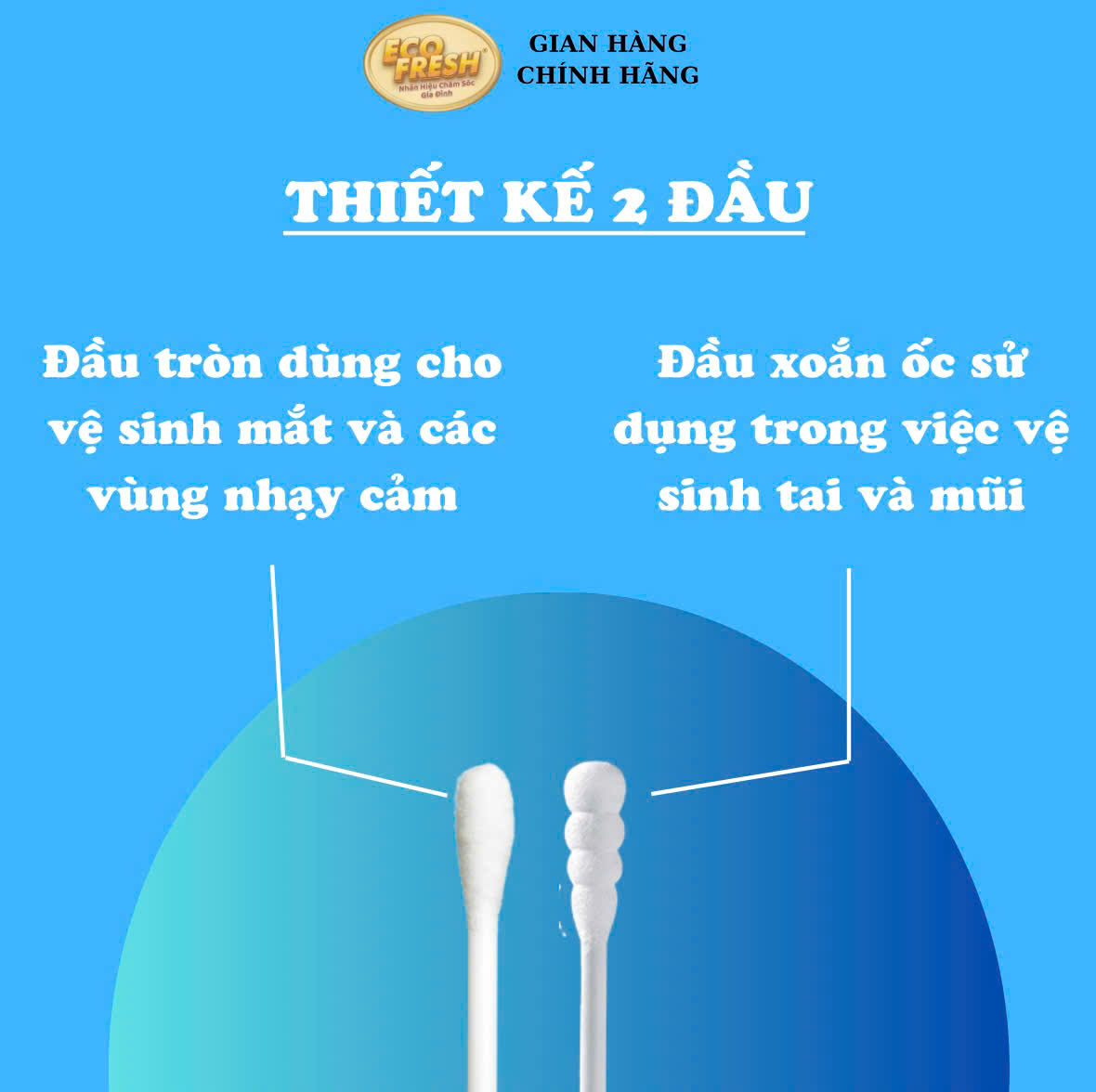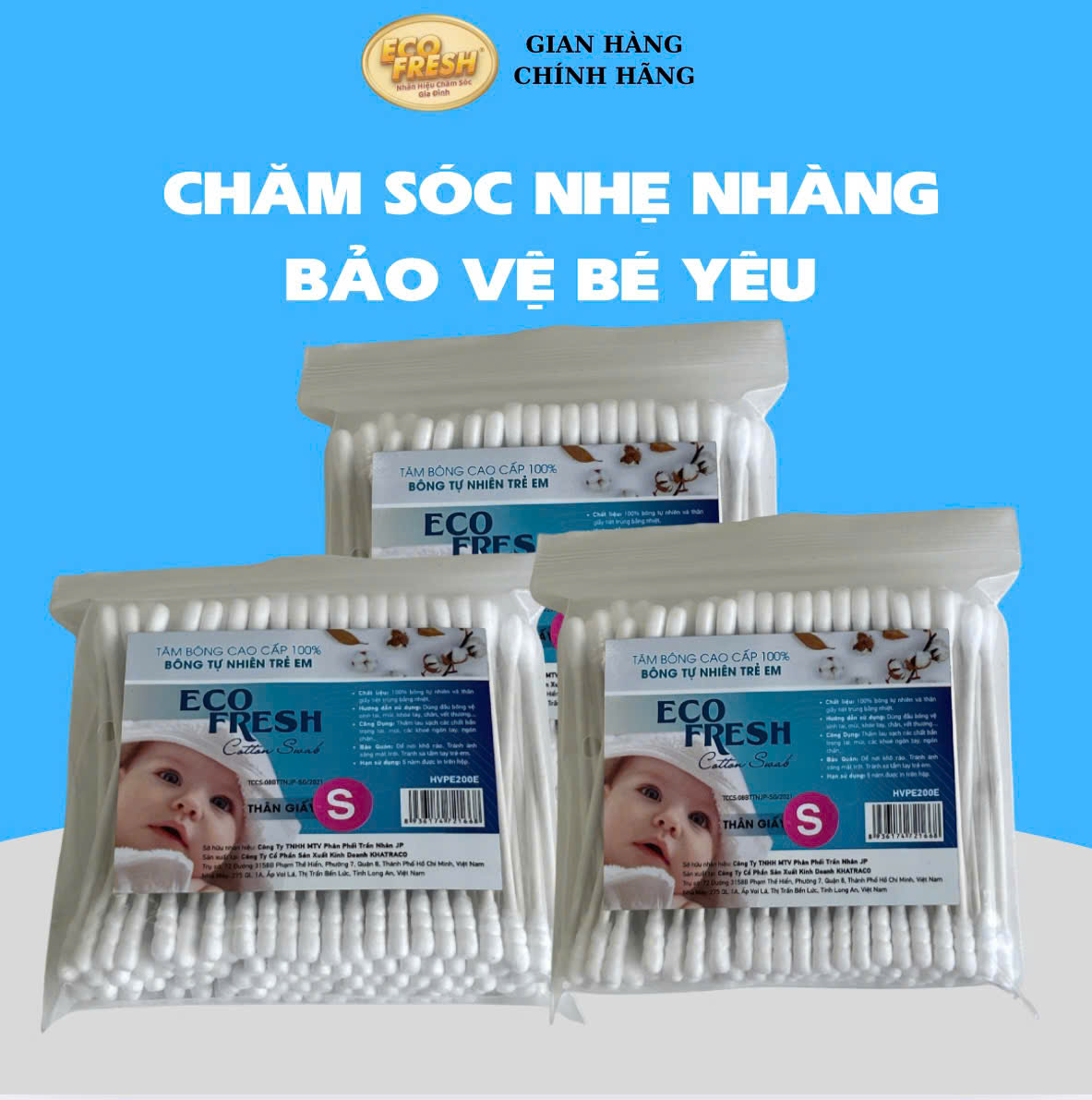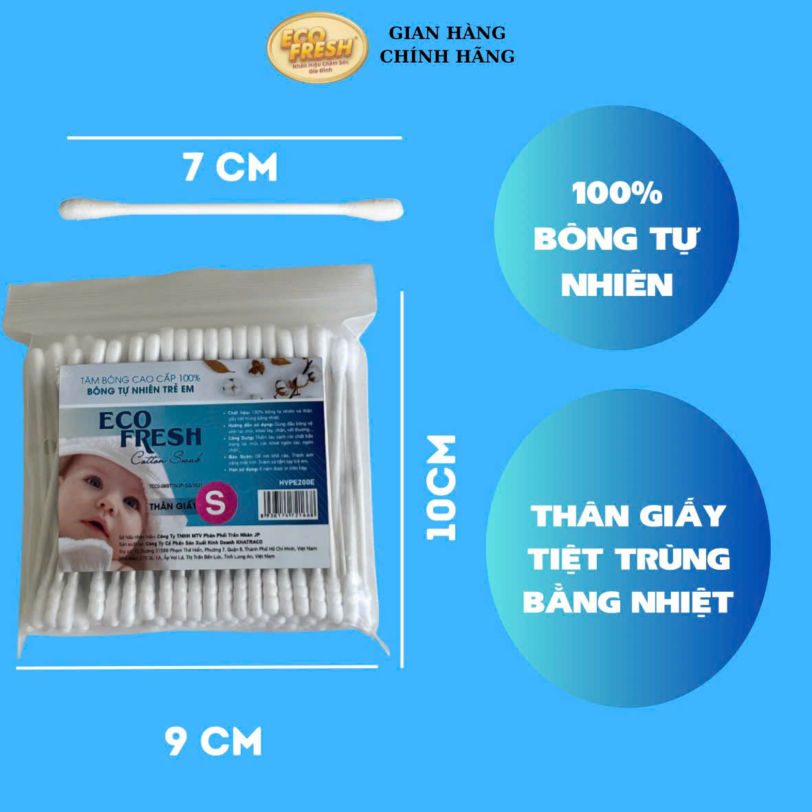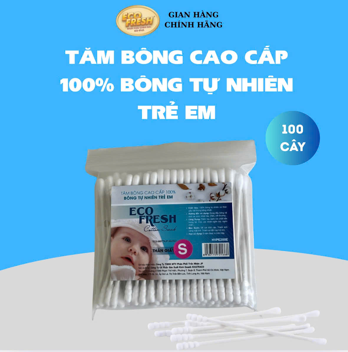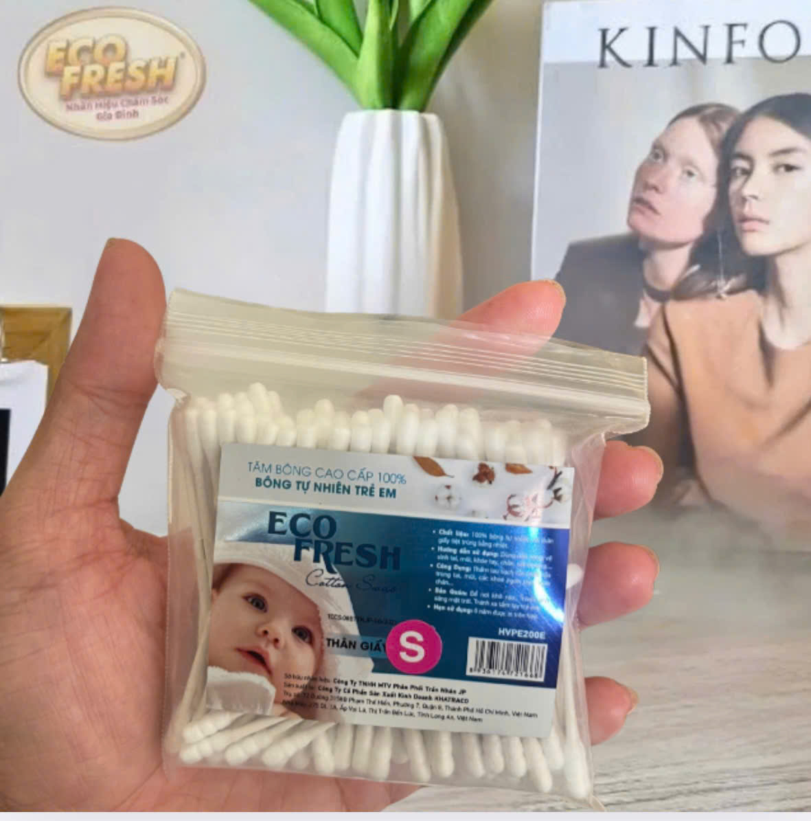 Đánh giá Tăm Bông ECO FRESH Trẻ Em – Cao Cấp, 100% Bông Tự Nhiên, Thân Giấy An Toàn (Hộp 100 Cây)
