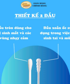 Thiết kế: Đầu bông nhỏ, xoắn chặt, giúp làm sạch nhẹ nhàng vùng tai, mũi, rốn, hoặc các vùng da nhạy cảm của bé.